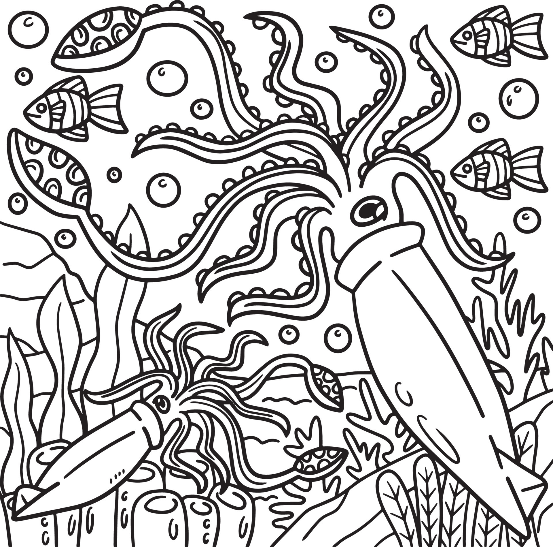 Giant Squid Coloring Page For Kids 10789157 Vector Art At Vecteezy